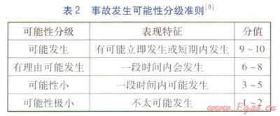 可能性分級(jí)準(zhǔn)則見(jiàn)表2,事故后果分級(jí)準(zhǔn)則見(jiàn)表3。