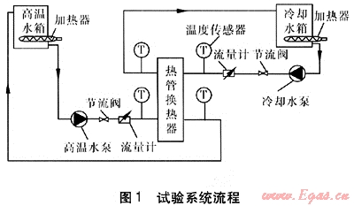 隨著技術(shù)的日益成熟,熱管越來越多地應(yīng)用于工業(yè)及民用領(lǐng)域。當(dāng)前熱管換熱器的應(yīng)用集中于余熱回收、空氣預(yù)熱、太陽能利用、電子芯片散熱、通風(fēng)空調(diào)節(jié)能等方面[1~3]。主要應(yīng)用于氣-氣換熱、氣-液換熱,在液-液換熱領(lǐng)域應(yīng)用比較少。但熱管具備的優(yōu)點(diǎn)使其在液-液換熱方面的廣泛應(yīng)用成為一種可能,因此研究液-液熱管換熱的特性及影響因素很有意義。本文對(duì)液-液熱管換熱器試驗(yàn)研究及影響因素進(jìn)行分析。