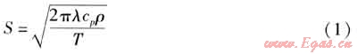 在建筑熱工研究中,把某一勻質(zhì)半無限大平壁一側(cè)受到諧波熱作用時,迎波面上接受的熱流波幅與該表面的溫度波幅之比作為材料的蓄熱系數(shù)。蓄熱系數(shù)越大,墻體材料的熱穩(wěn)定性越好。墻體材料蓄熱系數(shù)S的計算式為: