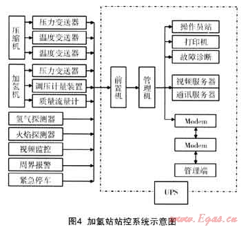 站控制系統(tǒng)采用分布、分級的控制方式,分散控制、集中管理,整個加氫站的站控系統(tǒng)由兩級計算機組成。前置機(下位機)負責實時數(shù)據(jù)的采集功能;管理機(上位機)用于完成數(shù)據(jù)信號接受處理、顯示、記錄、控制和數(shù)據(jù)上傳。在控制室集中顯示加氫站內(nèi)所有檢測儀表、閥門狀態(tài)、可燃氣體檢測等信號的監(jiān)測,以及對閥門實現(xiàn)自動控制。站控系統(tǒng)可監(jiān)視、控制整個加氫站運行的全過程,計算所需的技術參數(shù),自動繪制參數(shù)的實時和歷史趨勢曲線。對站區(qū)采集的數(shù)據(jù)包括卸氣系統(tǒng)、增壓系統(tǒng)、儲氫系統(tǒng)、可燃氣體檢測系統(tǒng)、火焰探測系統(tǒng)、視頻監(jiān)控系統(tǒng)及加氣系統(tǒng)等所有數(shù)據(jù)。