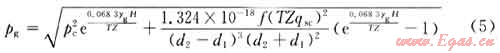 煤層氣井與常規(guī)氣井開采最大的不同是煤層氣產(chǎn)量較低,且相對(duì)常規(guī)氣井來說井口壓力較低,所以井口、套管、油管所用的級(jí)別都較低。因此,在利用式(5)計(jì)算煤層氣井氣柱段壓力時(shí),常忽略第二項(xiàng)所造成的影響。又由于實(shí)測套壓較低,在實(shí)際的計(jì)算中可以采用以下近似計(jì)算式: