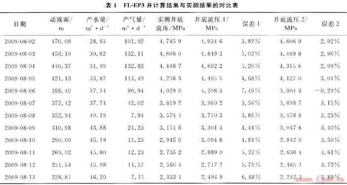 3) 柳林地區(qū)FL-EP3實(shí)際應(yīng)用結(jié)果表明,通過對(duì)比采用Hasan-Kabir推導(dǎo)的解析方法計(jì)算的井底流壓和根據(jù)修正公式計(jì)算的井底流壓,得出修正公式計(jì)算的結(jié)果與實(shí)測的壓力值較接近,誤差在4%以內(nèi),可靠度更高,且根據(jù)修正公式計(jì)算的井底流壓和通過試井測得的幾個(gè)特殊測試點(diǎn),可以確定生產(chǎn)壓差。