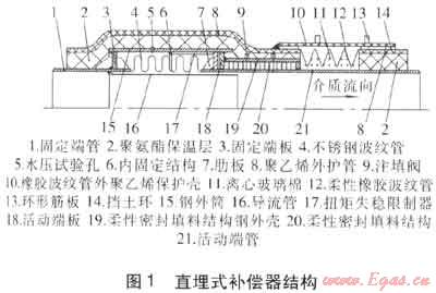 直埋式補(bǔ)償器的結(jié)構(gòu)見(jiàn)圖1。