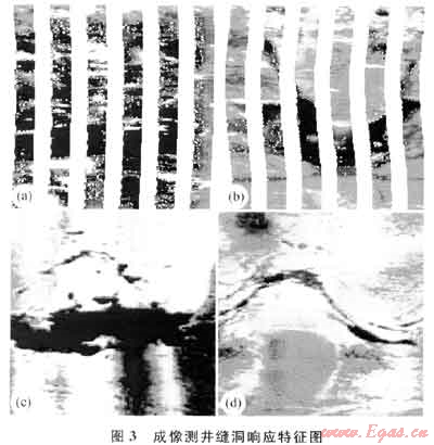 根據(jù)溶洞的分布特征及與孔、縫間的關(guān)系,可分為孔隙性溶洞和裂縫性溶洞??紫缎匀芏醇慈芏词侨芸妆贿M(jìn)一步溶蝕擴(kuò)大后形成(圖3-a),這些溶洞周圍常密集分布溶孔,孔、洞也常呈層狀分布,相互間連通性好;裂縫性溶洞即溶洞是構(gòu)造縫及少量成巖壓溶縫被局部溶蝕擴(kuò)大形成的,溶洞常沿裂縫呈串珠狀或長條狀分布,縫、洞連通性好(圖3-b、c、d)。以小型溶洞為主,占82%,中型溶洞占13%,大型溶洞占5%。在白云巖層段中、小型溶洞相對(duì)發(fā)育,而在石灰?guī)r層段大型溶洞發(fā)育。在EMI測(cè)井剖面中,大型溶洞的高度可達(dá)0.5m。在鉆井中常出現(xiàn)鉆時(shí)降低、放空、井漏顯示,如某井放空0.3m,EMI測(cè)井反映溶洞特征明顯(圖3-c)。在不同的構(gòu)造部位,溶}同的發(fā)育程度差異明顯,V3井區(qū)Zone1-Zone2的溶洞層段明顯比V1、V2井區(qū)發(fā)育,厚度為V1、V2井的1.5~2.0倍,表明從構(gòu)造的西南段向東北段溶蝕作用有減弱的趨勢(shì)。同時(shí),據(jù)巖石學(xué)特征、溶蝕孔洞內(nèi)幾乎沒有充填以及溶孔、溶洞與裂縫的密切關(guān)系,認(rèn)為溶蝕作用是在構(gòu)造裂縫形成之后發(fā)生的。