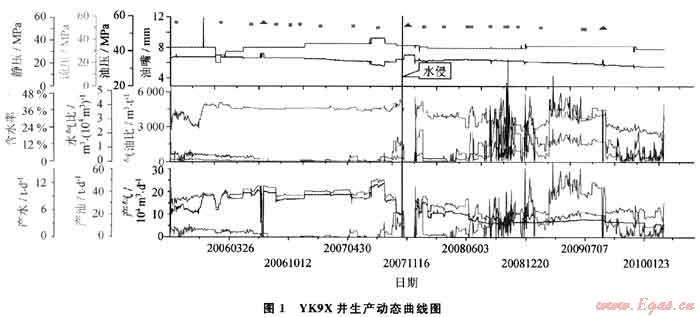 基于對氣油比異常氣井的動態(tài)分析,發(fā)現(xiàn)當氣井受到水侵影響的時候,其生產(chǎn)氣油比都會出現(xiàn)不同程度的下降,認為出水會導(dǎo)致生產(chǎn)氣油比的下降。