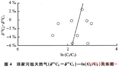 3.1.2 (δ13C2—δ13C3)—ln(C2/C3)關(guān)系圖