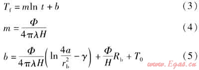 根據(jù)線熱源理論,埋管內(nèi)流體的平均溫度計算式為: