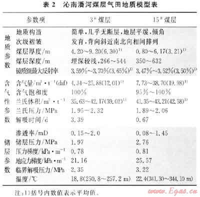 1) 沁南潘河煤層氣田地質(zhì)構(gòu)造簡單,次級(jí)褶皺構(gòu)造發(fā)育。3#煤層厚度大(6.5m左右),結(jié)構(gòu)簡單,分布穩(wěn)定;15#煤層較穩(wěn)定,厚度為薄-中等。煤變質(zhì)程度高,屬于無煙煤;煤層含氣性良好,含氣量較高,但平面上變化較大,氣體質(zhì)量好,甲烷含量超過98%;含氣飽和度高,介于95%~100%;滲透率相對(duì)較好,儲(chǔ)層壓力較高??傮w上,地質(zhì)和儲(chǔ)層特征參數(shù)有利于煤層氣富集和高產(chǎn)。