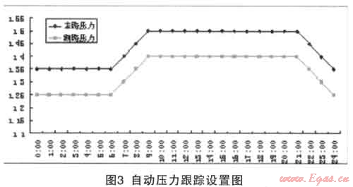 該功能可以預(yù)輸入最多4條壓力曲線,在不同的季節(jié)或者時(shí)間段選擇不同的壓力自動跟蹤曲線。