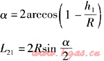 ① 彎道上敷設燃氣管道時合理的節(jié)點位置,即兩轉(zhuǎn)折點A、B間的距離L21;