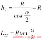 表5 相同管徑管道的轉(zhuǎn)角α與切線長L22的關系