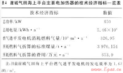 在崖城氣田海上平臺上,除了三甘醇再沸騰器以外,還有一些生產(chǎn)設(shè)備和生活設(shè)施是需要使用熱源的,其主要電加熱器一覽表見表3。