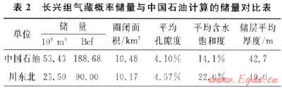 本次計算的概率儲量分布的P50和中國石油天然氣股份有限公司(以下簡稱中國石油)的計算結(jié)果差別較大,其主要的原因是本次所采用的孔隙度截止值與中國石油所采用的有較大差別,另外本次計算使用的圈閉面積也小于中國石油采用的圈閉面積。對于P50,采用了3%的孔隙度下限值,而中國石油原來采用的是2%。使用3%的截止值時,各井平均孔隙度會略微偏高,但平均產(chǎn)層厚度卻顯著低于采用2%孔隙度截止值時的厚度(表2)。