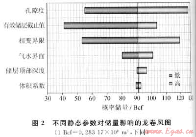 天然氣體積系數(shù)對儲量大小的影響雖然小,但仍將其考慮于模型中。體積系數(shù)的變化范圍由雪佛龍能源技術(shù)公司(ETC)提供。
