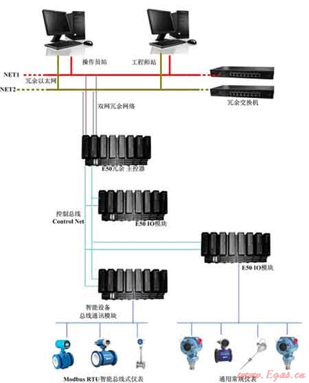 ●冗余結(jié)構(gòu):操作員站、系統(tǒng)網(wǎng)絡(luò)、主控單元、I/O模塊、系統(tǒng)電源完全冗余。