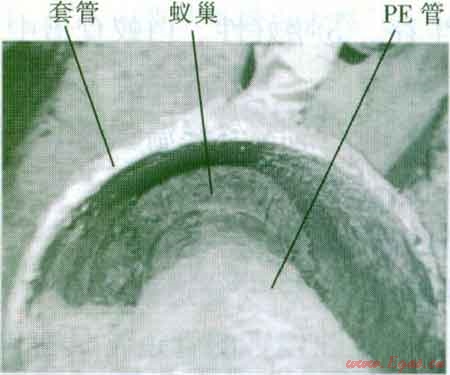 圖1 PE管與鋼套管問(wèn)被蟻巢填滿(mǎn)