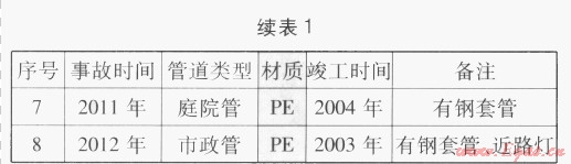 深圳地區(qū)2000年開(kāi)始將PE管道應(yīng)用于埋地燃?xì)庵袎汗艿馈倪\(yùn)行情況來(lái)看,PE管道確實(shí)較好地解決了傳統(tǒng)金屬管道易腐蝕穿孔和接頭易泄漏等運(yùn)行維護(hù)的難題,顯著提高了燃?xì)廨斔偷目煽啃裕蟠蠼档土斯艿赖倪\(yùn)行維護(hù)費(fèi)用。但在近年運(yùn)行過(guò)程中,曾出現(xiàn)多起PE燃?xì)夤艿朗馨紫佒g而造成管道破壞泄漏的問(wèn)題。