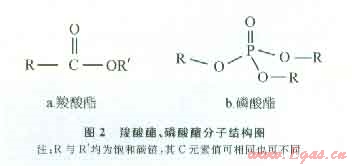 石油行業(yè)中常用有機酯類物質[10]通常為飽和羧酸酯(圖2-a)和磷酸酯(圖2-b),均屬于中性物質,不會對壓裂液造成破膠。