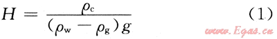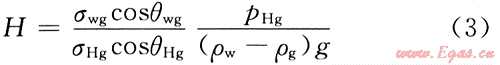 在毛細(xì)管壓力曲線上,一定壓力對應(yīng)的非潤濕相飽和度相當(dāng)于氣藏中一定高度的含氣飽和度,因此,把毛細(xì)管壓力曲線的縱坐標(biāo)用自由水面以上的液柱高度來表示,就可以用該曲線來確定出氣藏中任意高度上的含氣飽和度,從而得出整個(gè)氣藏的氣水縱向分布特征。自由水面以上液柱高度的計(jì)算公式為: