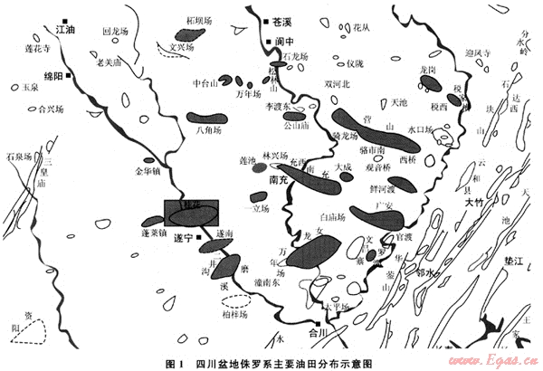 四川盆地雖以產氣為主,但至今仍在盆地內發(fā)現(xiàn)了柘壩場、金華鎮(zhèn)、秋林、中臺山、石龍場、八角場、公山廟、充西-蓮池、桂花、一立場、稅家槽、鮮渡河等油田(圖1)。在四川盆地中部(川中)侏羅系中自下而上發(fā)現(xiàn)了珍珠沖段、東岳廟段、大安寨段、涼高山組、沙溪廟組5個含油層段,其中大安寨段、涼高山組和沙溪廟組為主力產油層。川西南部和中部在侏羅系地層中發(fā)現(xiàn)了新場、洛帶、平落壩、大興西等氣田,川西北部侏羅系露頭發(fā)現(xiàn)了油砂巖[1]。1950~1960年間在江油海棠鋪構造所鉆井至今井口仍有少量原油產出。川東地區(qū)在侏羅系鉆井中也頻見油氣顯示,新5井日產原油36t[2]。川東北渡口河、五寶場地區(qū)于侏羅系上沙溪廟組亦發(fā)現(xiàn)氣藏并投入開發(fā)。為此,研究了四川盆地侏羅系的油氣成藏條件。