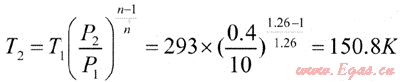 從工程熱力學可知,對于理想氣體在絕熱等熵膨脹時,它的膨脹過程可以用下述簡單的指數(shù)方程來表示[12]: