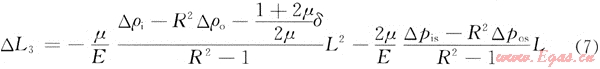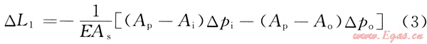 當(dāng)測試管柱內(nèi)流體流動而環(huán)形空間的流體不流動一時(shí),其管柱長度變化△L3為: