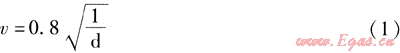 根據國外實驗得出以下管道燃氣安全流速公式[3]: