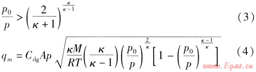 當滿足式(3)時,氣體流動屬于亞聲速流動,燃氣泄漏速率用式(4)計算[9]。