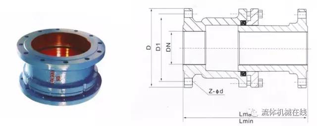 由能夠作軸向相對運動的內外套管組成(下圖[套管伸縮節(jié)])。內外套管之間采用填料函密封。使用時保持兩端管子在一條軸線上移動。在伸縮節(jié)的兩端裝設導向支架。它的優(yōu)點是對流體的流動摩擦阻力小,結構緊湊;缺點是密封性較差,對固定支架推力較大。套管伸縮節(jié)主要用于水管道和低壓蒸汽管道。