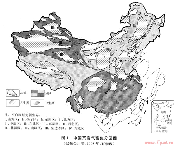 作為源巖排烴殘余的主要產(chǎn)物,頁(yè)巖氣的存在具有廣泛意義。頁(yè)巖氣是美國(guó)大規(guī)模經(jīng)濟(jì)性勘探開(kāi)發(fā)的三大非常規(guī)天然氣類型(根緣氣、頁(yè)巖氣、煤層氣)之一,近年來(lái)得到了空前的發(fā)展,其頁(yè)巖氣年產(chǎn)量相當(dāng)于目前我國(guó)各類天然氣年產(chǎn)量的總和。作為非常規(guī)油氣資源的一種[1],頁(yè)巖氣聚集機(jī)理特殊,富集條件多樣,它使得一大批不曾具備常規(guī)油氣成藏條件的泥頁(yè)巖重新變得具有直接勘探意義。高含有機(jī)碳泥頁(yè)巖在中國(guó)廣泛分布,頁(yè)巖氣也因此成為值得高度重視且具有廣泛而重要勘探開(kāi)發(fā)意義的非常規(guī)油氣資源類型。