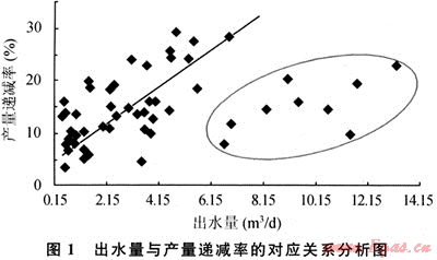 出水增大儲(chǔ)層內(nèi)滲流阻力和井筒壓力損耗,影響氣井的產(chǎn)能(圖1)。在氣井產(chǎn)能評(píng)價(jià)時(shí),必須考慮出水對(duì)產(chǎn)能的影響。對(duì)一部分井進(jìn)行了不同開(kāi)采階段的多次系統(tǒng)試井,產(chǎn)能方程研究表明,氣井的無(wú)阻流量隨氣井出水量的增加而降低。但同時(shí)由于地層能量下降、氣井出砂等因素也會(huì)降低氣井產(chǎn)能,僅根據(jù)目前系統(tǒng)試井測(cè)試數(shù)據(jù)還不能判斷出水對(duì)氣井產(chǎn)能的降低幅度。