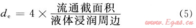 其中,∑Le是氣-液兩相交叉流流道局部阻力的總和,當(dāng)量直徑de按非圓型截面流道定義: