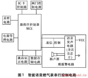 智能語(yǔ)音燃?xì)獗砜刂齐娐分饕呻娫垂芾黼娐贰⒉蓸与娐?、液晶顯示電路、數(shù)據(jù)存儲(chǔ)電路、IC卡控制電路、閥門(mén)控制電路及報(bào)警電路組成MCU的外圍電路組成,這些電路由MCU進(jìn)行統(tǒng)一管理,協(xié)調(diào)各部分電路的工作。語(yǔ)音燃?xì)獗砭褪菍⒃瓐?bào)警電路部分去掉,用現(xiàn)報(bào)警電路替代,以實(shí)現(xiàn)語(yǔ)音報(bào)警功能。