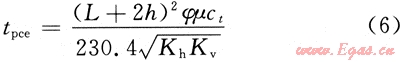 對(duì)于式(5),t0可理解為水平井開井生產(chǎn)至垂直平面徑向流結(jié)束時(shí)間,記為tpce;r0為擬圓形坑道外緣半徑,記為rpce。關(guān)于tpce的確定,利用Giger等人提出的等效滲透率的方法[4],并結(jié)合式(1)以及tpce的表達(dá)式可以容易得出: