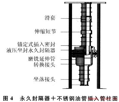 1) 對(duì)于預(yù)期產(chǎn)氣量高、腐蝕條件苛刻、生產(chǎn)周期長(zhǎng)的高溫高壓氣井,采用生產(chǎn)封隔器+不銹鋼油管插入的方式完井(圖4),生產(chǎn)完井管柱組成:油管+坐落接頭+油管+生產(chǎn)封隔器+油管+滑套+伸縮短節(jié)+油管+油管掛+井口裝置。其管柱功能如下:在高壓、高溫生產(chǎn)條件下,保證管柱氣密封;可滿足生產(chǎn)過程中壓井、測(cè)試、泡排工藝的需要;保證多年不動(dòng)管柱,氣井能長(zhǎng)期安全生產(chǎn);保護(hù)套管不受CO2氣體腐蝕。