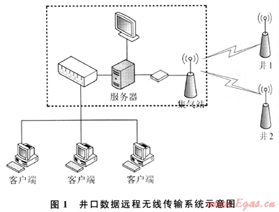 遠程測試技術(shù)的核心主要在于兩個方面:①依靠井口數(shù)據(jù)遠傳技術(shù),在井口安裝壓力變送器對套壓進行數(shù)據(jù)采集與傳輸;②建立適合蘇里格氣田實際的壓力折算模型和計算系統(tǒng),進行試井解釋和分析。圖2是已經(jīng)投入使用的井口數(shù)據(jù)傳輸系統(tǒng)。