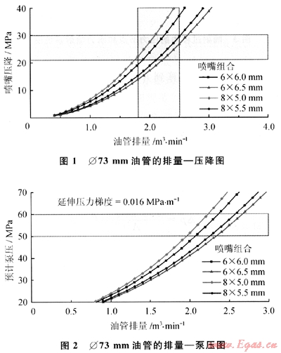 在綜合考慮了噴嘴壓降和井口泵壓的條件下,選擇油管注入排量2.2m3/min,此時泵壓為66.9MPa,基本上是井口不超壓的前提下可達(dá)到的最高排量。
