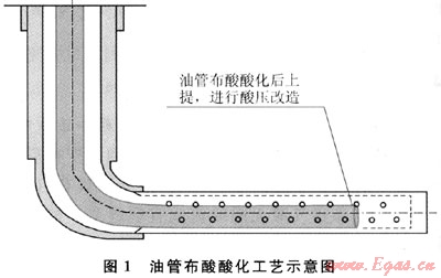 2007年以前,靖邊氣田重點(diǎn)采用了水平段油管布酸酸化+酸壓改造工藝(圖1),在2口水平井進(jìn)行了現(xiàn)場試驗,其改造效果較好。