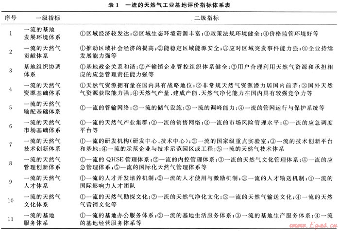 3 一流天然氣工業(yè)基地指標(biāo)體系的構(gòu)建