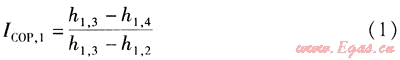 式中ICOP,1——直膨式太陽能熱泵系統(tǒng)的制熱性能系數(shù)