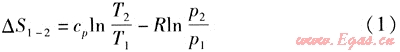 等熵膨脹過(guò)程中△S1-2=0,則膨脹后的氣體溫度為: