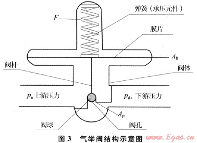 在封隔器以上的最下一級氣舉閥為工作閥,其他則為排液閥。排液閥在油井投產(chǎn)初期當(dāng)油套環(huán)空排液時(shí)工作,地面高壓氣舉氣流進(jìn)工作閥后,油管內(nèi)壓力大幅下降,套管內(nèi)注氣壓力也相應(yīng)下降,排液閥隨即關(guān)閉,停止工作。工作閥選用BK空閥,把正常的氣舉閥(圖3)卸開取出閥芯(彈簧、膜片、閥桿、閥球)即為空閥,其特點(diǎn)是保證氣舉閥常開,當(dāng)?shù)孛孀鈮毫υ谝欢ǚ秶▌?dòng)時(shí),氣舉工作閥不受影響,可保持連續(xù)注氣,同時(shí)避免了注氣點(diǎn)上移問題,保證了氣舉井平穩(wěn)生產(chǎn)[4]。