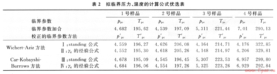 3.1 擬臨界壓力、溫度校正的優(yōu)選