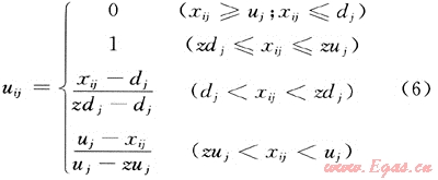 式中:uj為最大界限值,dj為最小界限值(下同)。