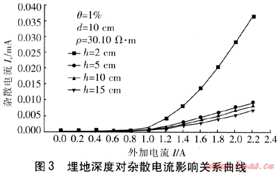 ② 金屬管道埋地深度對(duì)雜散電流的影響