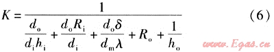 熱負(fù)荷確定后,可由總傳熱速率方程(1)求得換熱面積。其中總傳熱系數(shù)為: