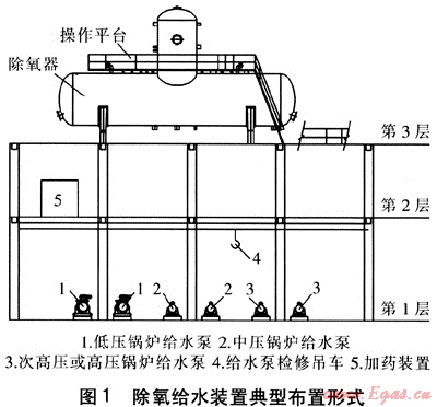 Key words:deaerating feed water;layout of device;design of pump house;crane