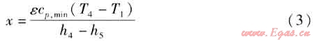 由式(3)可知再液化比x與熱交換器效率ε成正比。原料流的比定壓熱容通常小于回流的比定壓熱容,因為大多數(shù)原料流只承載著顯熱,而回流還承載著相變過程中的潛熱。原料流的比定壓熱容大于回流的比定壓熱容只會發(fā)生在再液化比很小的情況下,而這種情況與重?zé)N去除工藝的目的相矛盾。因此原料流的比定壓熱容為最小比定壓熱容。
