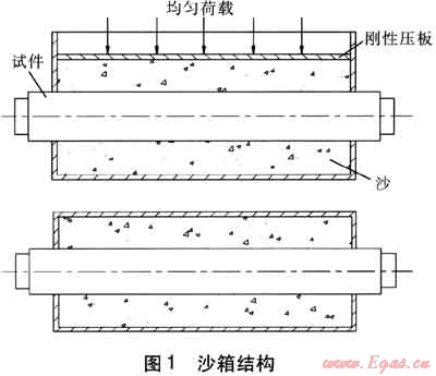 CJ/T 200—2004、TSG D7002—2006對(duì)沙箱外形尺寸(尤其是寬度)的要求有所不同。CJ/T 200—2004要求的沙箱寬度按試件外護(hù)鋼管的外徑(最大試驗(yàn)?zāi)芰?加300mm為限,而TSG D7002—2006是以試件工作管外徑(最大試驗(yàn)?zāi)芰?加200 mm為限,沙箱長度由1800mm改為1500mm。兩個(gè)規(guī)范對(duì)沙箱高度沒有進(jìn)行要求,在實(shí)際設(shè)計(jì)制造過程中,沙箱高度是在寬度基礎(chǔ)上附加容納剛性壓板厚度得到的。