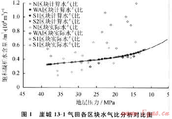 若現(xiàn)場水氣比大于理論計(jì)算值,說明地層存在邊、底水或游離態(tài)的可動(dòng)隙間水進(jìn)入井筒;若現(xiàn)場產(chǎn)水量小于理論計(jì)算飽和含水量,說明地層條件下氣態(tài)凝析水含量未達(dá)飽和,產(chǎn)出水以凝析水為主。通過分析,崖城13-1氣田部分區(qū)塊已有地層水侵入(圖1)。